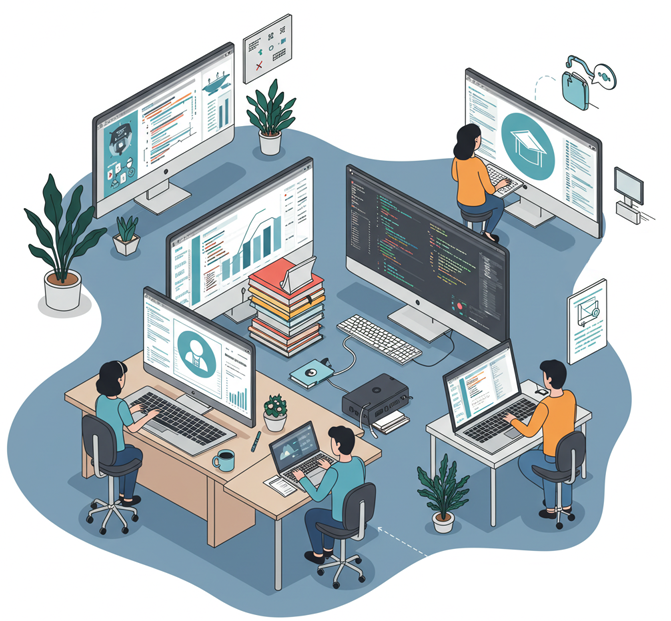 We offer customized software solutions designed to enhance productivity and efficiency to deliver secure and scalable software solutions Our expertise includes open-source ILMS (Integrated Library Management Systems), digital library solutions, open-source ERP software, ERP implementation, and licensed software solutions. Also Website Development & Mobile App Developement (IOS/ Andriod )As Additionally, we provide enterprise antivirus solutions to ensure robust security for business operations. Our tailored approach helps organizations streamline processes, improve management, and drive digital transformation.
